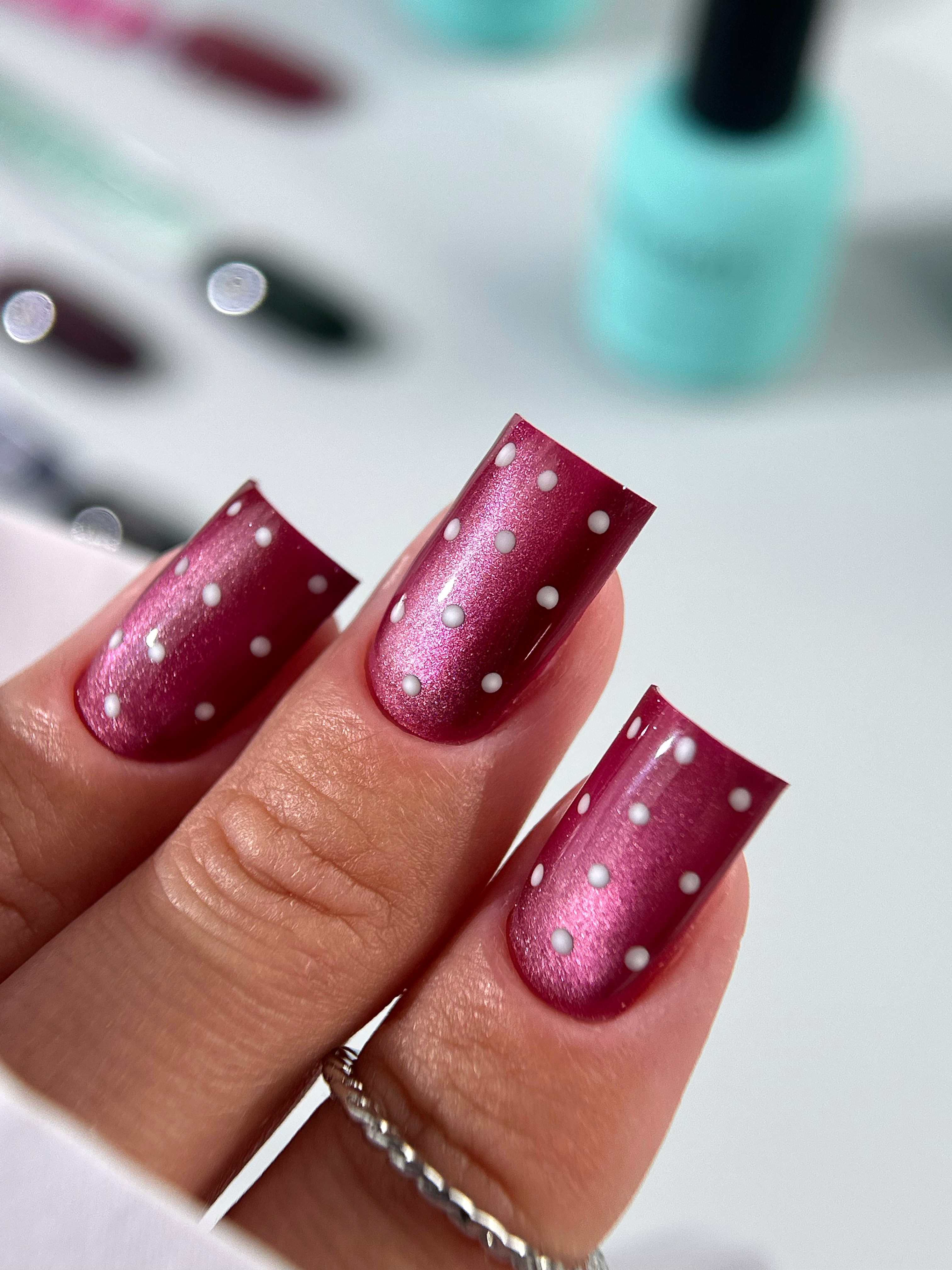 Six shades, each with its own character: from cool smoky steel to warm soft pink. This isn't just a cat's eye—it's a floating highlight that glides across the nail like a ray of light on smooth silk.