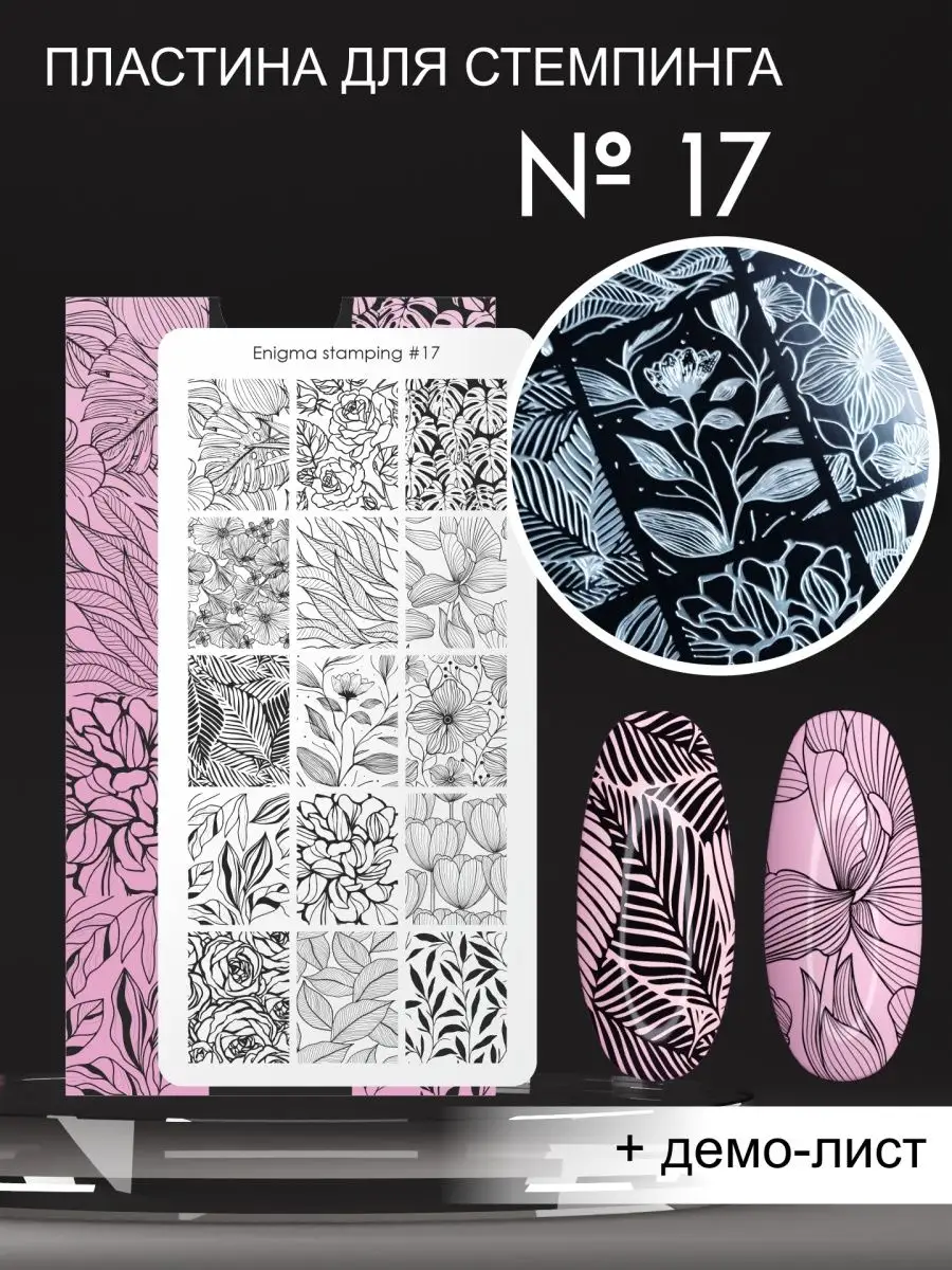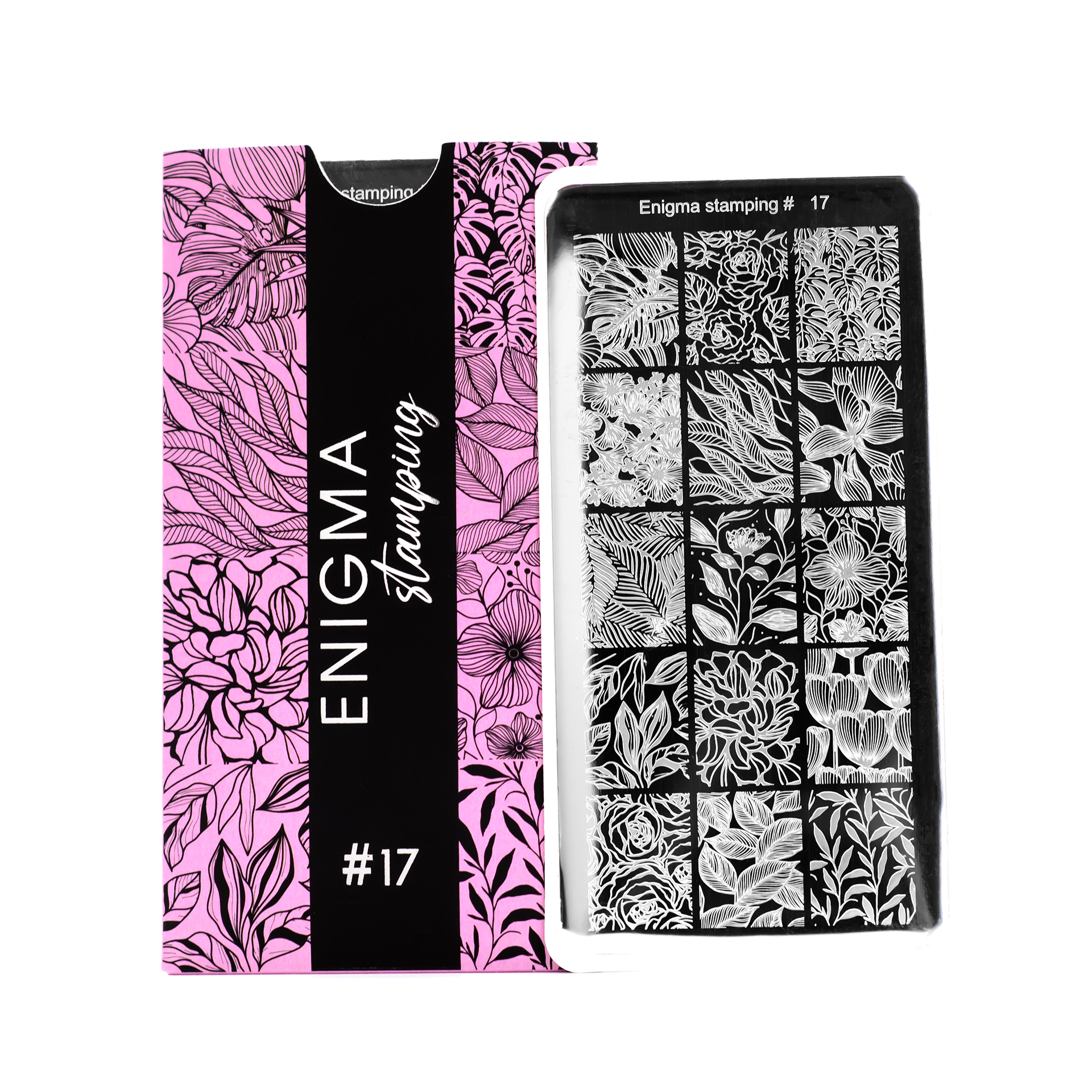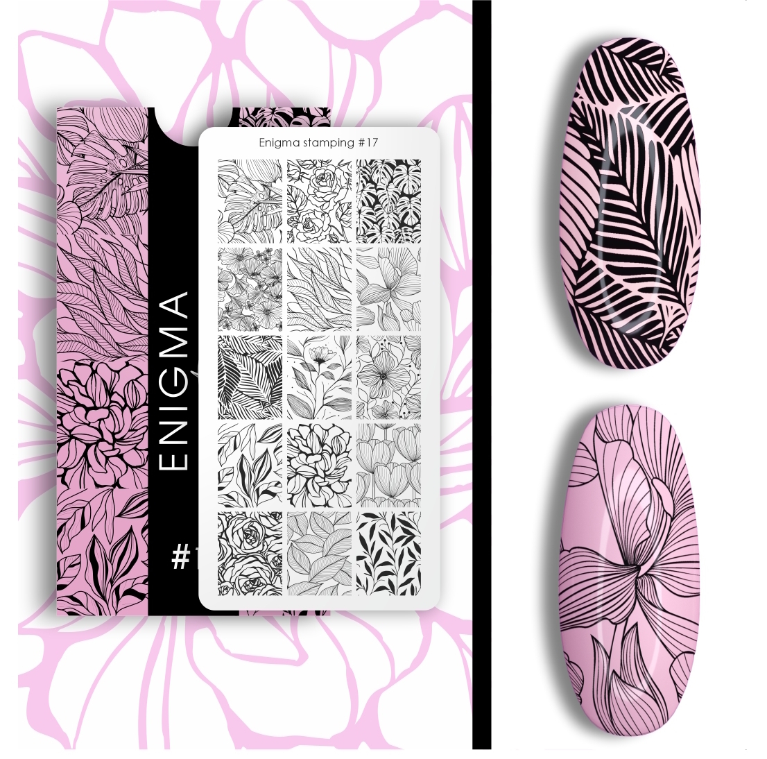 Don't forget to remove the two protective films before use! The unique spring stamping plate, Enigma Stamping #17, is your key to creating a unique nail design! This new plate promises fresh ideas for vibrant and stylish manicures. Every detail is meticulously crafted to ensure a clear and beautiful imprint. With this plate, you can easily and quickly apply designs to your nails, creating a vibrant and memorable look. Be on trend with this amazing new product, which will give your nails a special charm. As a bonus, the product includes a transparent demo sheet, allowing your clients to try out designs on their nails. Create like a true artist and use only high-quality materials! In our store, you'll find everything you need for your creative ideas. A stamping polish and stamp for a high-quality image are a perfect addition.