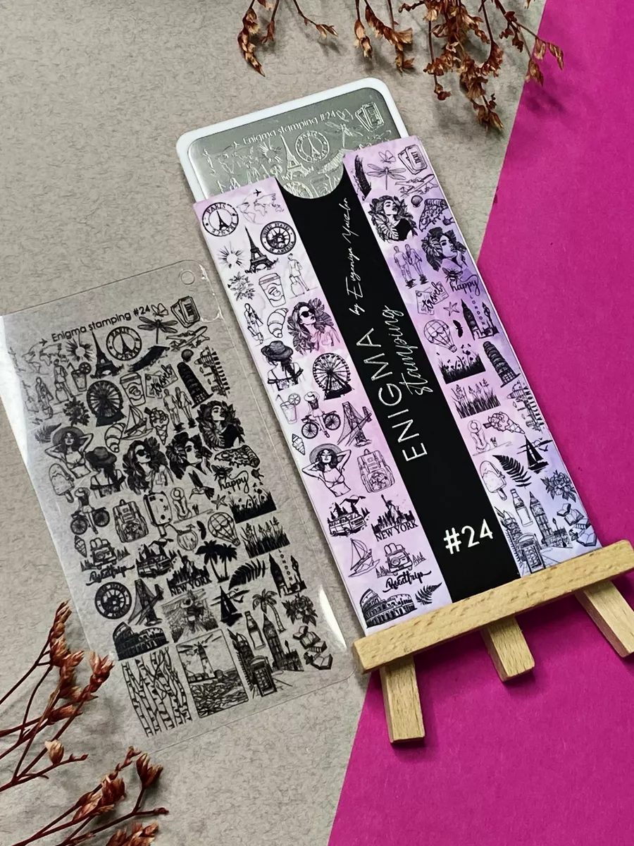Don't forget to remove the two protective films before use! The unique spring stamping plate, Enigma Stamping #024, is your key to creating a unique nail design! This new plate promises fresh ideas for vibrant and stylish manicures. Every detail is meticulously crafted to ensure a clear and beautiful imprint. With this plate, you can easily and quickly apply designs to your nails, creating a vibrant and memorable look. Be on trend with this amazing new product, which will give your nails a special charm. As a bonus, the product includes a transparent demo sheet, allowing your clients to try out designs on their nails. Create like a true artist and use only high-quality materials! In our store, you'll find everything you need for your creative ideas. A stamping polish and stamp for a high-quality image are a perfect addition.