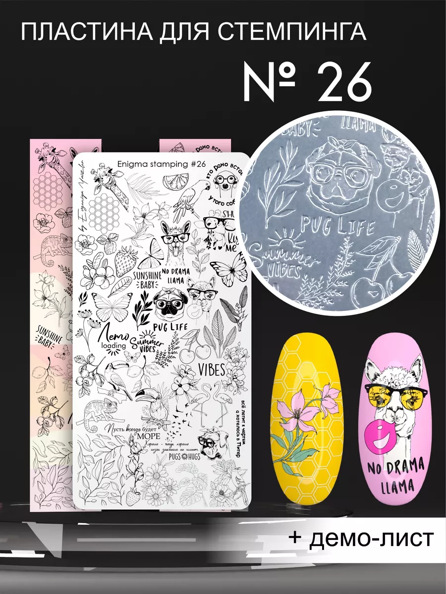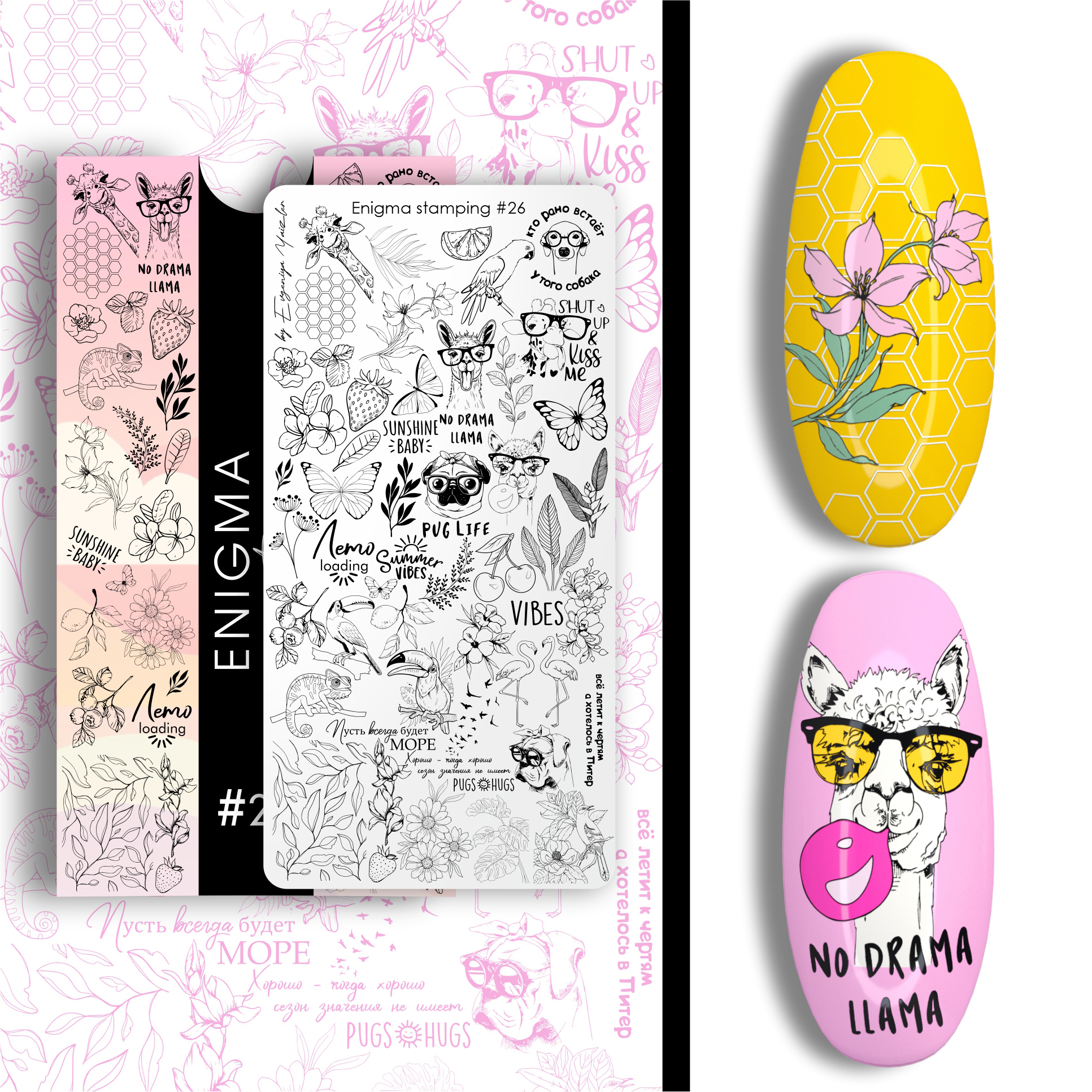 Don't forget to remove the two protective films before use! The unique spring stamping plate, Enigma Stamping #026, is your key to creating a unique nail design! This new plate promises fresh ideas for vibrant and stylish manicures. Every detail is meticulously crafted to ensure a clear and beautiful imprint. With this plate, you can easily and quickly apply designs to your nails, creating a vibrant and memorable look. Be on trend with this amazing new product, which will give your nails a special charm. As a bonus, the product includes a transparent demo sheet, allowing your clients to try out designs on their nails. Create like a true artist and use only high-quality materials! In our store, you'll find everything you need for your creative ideas. A stamping polish and a stamp for a high-quality image are a perfect addition.